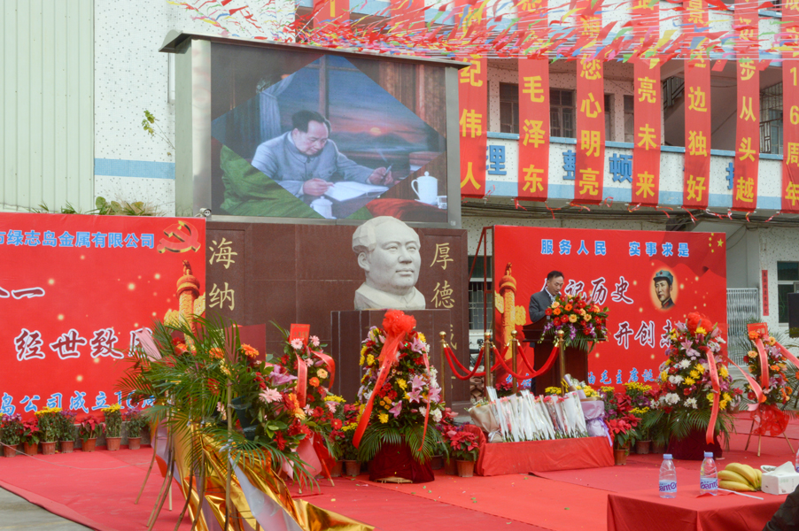 綠志島實業(yè)由朱祖生先生創(chuàng)業(yè)于2001年,經(jīng)過多年的發(fā)展奮斗,現(xiàn)在公司產(chǎn)品包括焊錫條、焊錫絲、焊錫膏,清洗劑,防銹劑,潤滑油等。綠志島實業(yè)的發(fā)展,在以毛主席思想為信仰的指引下突飛猛進,在“吃水不忘挖井人”的感恩心下穩(wěn)步發(fā)展。為了鞏固毛主席思想作為綠志島的信仰核心,綠志島于2012年12月25日從泰山迎接來毛主席泰山石像,并立于公司內(nèi)部。自此,綠志島每年12月26日都會齊聚眾多認同毛主席的追隨者,在綠志島內(nèi)緬懷紀(jì)念偉大領(lǐng)袖毛主席。