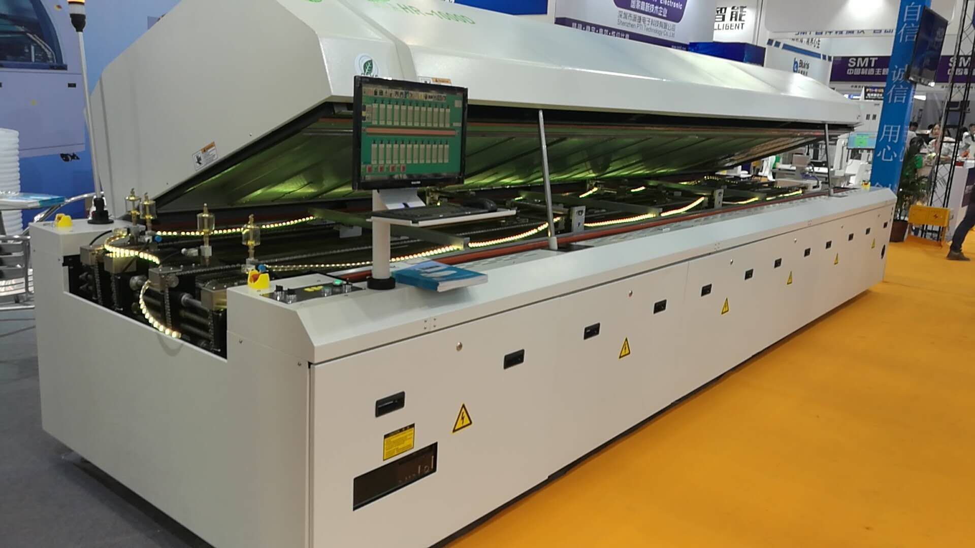 回流焊著眼于提高設(shè)備的傳熱性能,推出了一整套改進(jìn)措施,包括重新設(shè)計(jì)工藝通道,并借助革命性的單機(jī)兼容多種工藝同時(shí)應(yīng)用,提高了產(chǎn)能,降低了電能和氮?dú)獾南?,降低了生產(chǎn)成本。今天我們來(lái)了解一下八溫區(qū)電腦無(wú)鉛回流焊的特點(diǎn)。
